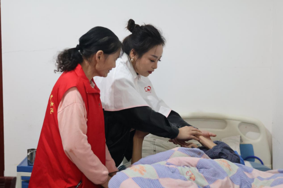 活动中,志愿者们运用专业知识和技能,重点为卧床及偏瘫患者进行良肢位摆放指导,帮助患者维持正确体位,预防关节挛缩、肌肉萎缩等并发症。同时指导养老院工作人员对老人进行肢体功能锻炼,更好地增强老人肌力和关节活动度,促进功能恢复。此外,志愿者们还围绕老年群体常见健康风险,开展防跌倒、防血栓等健康知识宣讲,普及相关预防措施和注意事项,提升老人们的自我保护意识。
