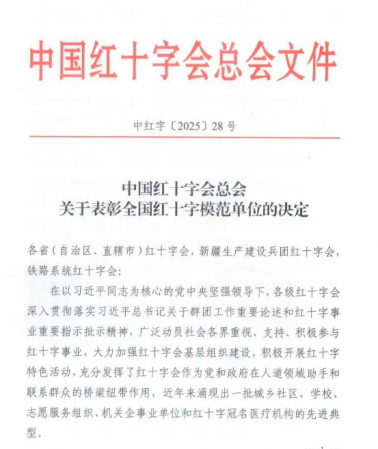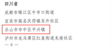 2025年11月18日,中国红十字会总会发布《中国红十字会总会关于表彰全国红十字模范单位的决定》,乐山市红十字会推荐的乐山市市中区平兴镇获评城乡社区类别“全国红十字模范单位”。
