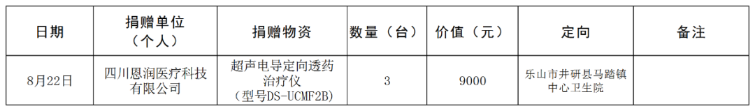乐山市红十字会关于社会捐赠物资接收使用情况的公示(2023年第7期)(关键词:恩润、治疗仪)