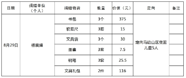 乐山市红十字会关于社会捐赠物资接收使用情况的公示(2024年第4期)(关键词:笔袋、书包)