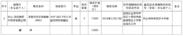 乐山市红十字会关于社会捐赠物资接收使用情况的公示(2025年第1期)(关键词:AED)
