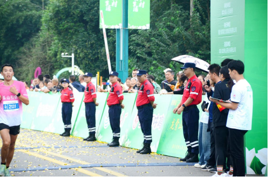 赛事过程中,救援队员严守纪律、分工协作,在赛道各关键点位实施全程执勤,密切观察选手身体状况,及时维护现场秩序,并为有需要的群众提供周到服务,以专业行动构建起一道坚实而温暖的安全防线。