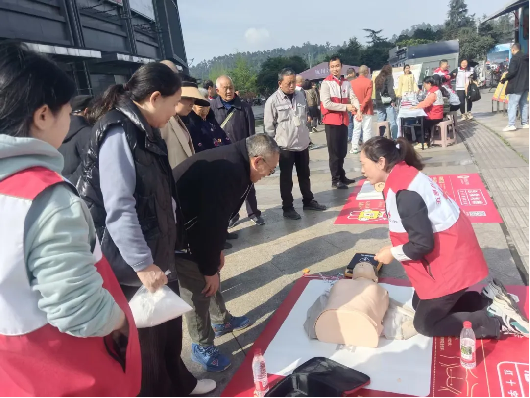 应急救护宣传体验区同样人气高涨,红十字应急救护师资通过现场演示,细致讲解心肺复苏、海姆立克急救法等实用技能,并邀请群众参与互动体验,手把手指导操作,让群众更直观地了解应急救护知识,确保每位参与者都能初步掌握这项“急救技能”。
