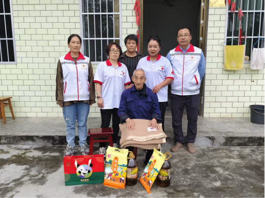在2025年国庆、中秋双节前夕,犍为县红十字会志愿服务队志愿者自发筹集资金,购置大米、粮油、月饼、凉被等慰问品,专程走访慰问生活困难的抗美援朝老兵,向他们致以节日的问候和崇高的敬意。