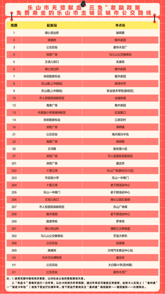 (一)免费乘坐乐山市主城区公交。“热血卡”持有者可刷卡免费乘坐乐山市主城区城市公共交通车辆,每月限额与老年公交卡一致,刷卡次数当月清零。年龄70岁以上具备办理老年公交卡的,应使用老年公交卡乘坐公共交通车,不再享受使用“热血卡”乘坐公共交通车辆服务。
