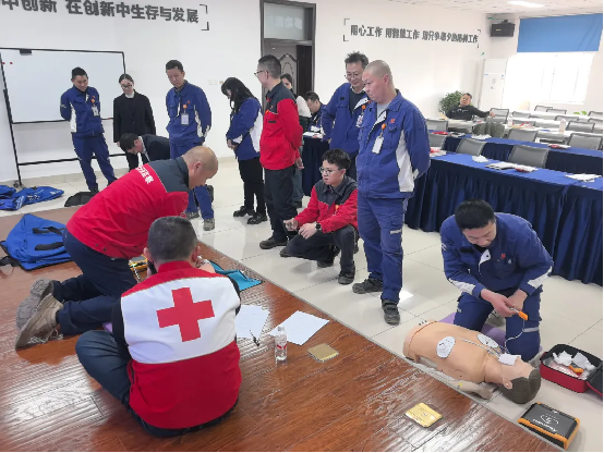 3月16日—17日,五通桥区红十字会将急救课堂搬进生产一线,走进四川永祥多晶硅有限公司新材料分厂,为50余名企业职工送上实用急救技能。培训紧密结合企业生产特点,重点讲解心肺复苏、创伤处置等与岗位安全息息相关的内容,让职工学有所获、学以致用。