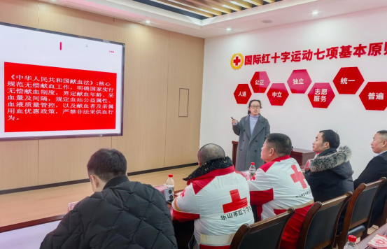 12月26日,乐山市红十字会第五期【博爱嘉州讲堂】开讲。本期主题是:生命接力,大爱传递——推动红十字“三献”事业更上新台阶。市红十字会党组成员、副会长张耀婷,党组成员、监事长李红英出席活动。市红十字会全体机关干部,各县(市、区)红十字会、市属各医疗机构红十字会相关负责同志,市中心血站相关负责同志,市红十字“三献”志愿服务队志愿者代表、市红十字各志愿服务队队长共40余人参加活动。