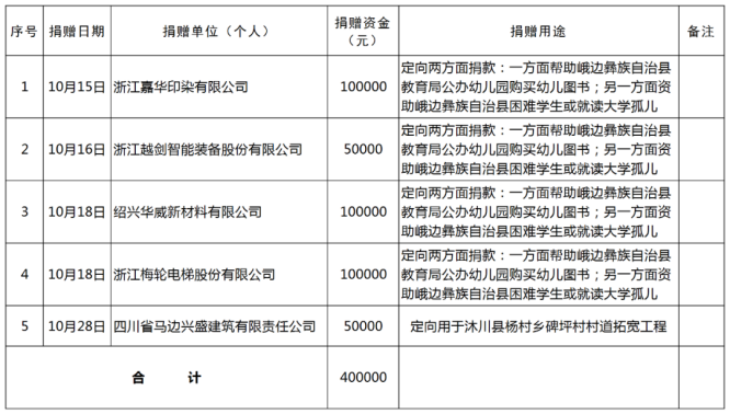 2024年10月1日0时至2024年10月31日24时,乐山市红十字会本级累计收到5笔捐赠资金共计400000元(大写:肆拾万元整)。在此,特向社会各界的爱心善举表示衷心的感谢!