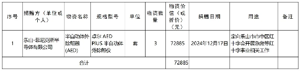 乐山市红十字会关于社会捐赠物资接收使用情况的公示(2025年第1期)(关键词:AED)