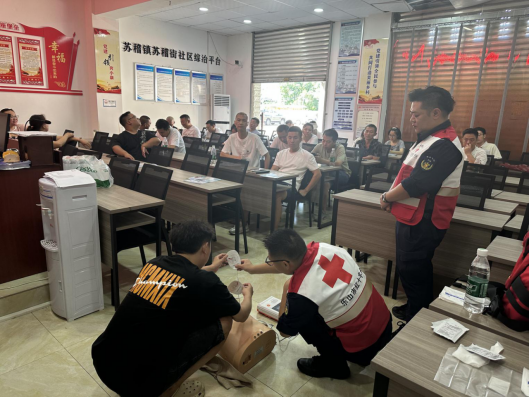 7月29日,一场别开生面的"青春志愿·守护生命"应急安全知识进社区活动在乐山市苏稽社区火热开展。乐山市红十字飞豹救援队、乐山市飞豹应急救援队与苏稽社区三方联动,为社区工作人员、各村支部书记、党员代表及居民送上了一份扎实的夏季安全"大礼包",着力提升防灾减灾意识与自救互救能力。