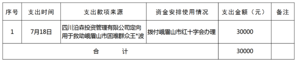 2025年7月1日0时至2025年7月31日24时,乐山市红十字会本级累计支出1笔捐赠资金共计30000元(大写:叁万元整)。按照公开、透明、高效的原则,现将捐赠资金支出情况公示如下,欢迎社会各界监督。在此,也特向社会各界的爱心善举表示衷心的感谢!