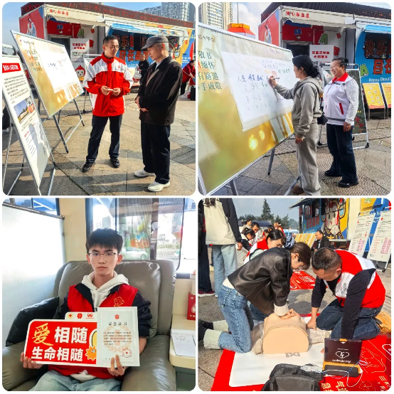 应急救护宣传体验区同样人气高涨,红十字应急救护师资通过现场演示,细致讲解心肺复苏、海姆立克急救法等实用技能,并邀请群众参与互动体验,手把手指导操作,让群众更直观地了解应急救护知识,确保每位参与者都能初步掌握这项“急救技能”。