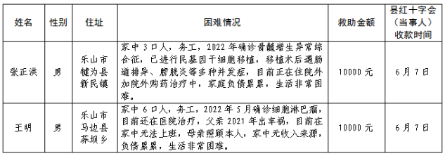 乐山市红十字会2023年人道救助公示