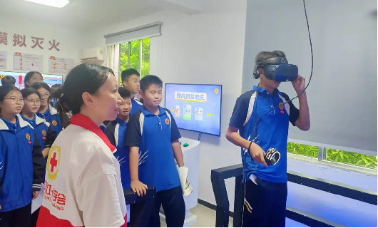 夹江县红十字会组织夹江一中学生走进县红十字应急救护培训基地参观学习。活动中,同学们学习了心肺复苏、海姆立克急救法等基本急救技能,并通过VR(地震、火灾、交通安全等)沉浸式体验模拟灾害场景,掌握了基本安全逃生技能,实现“科技+急救”融合教学。