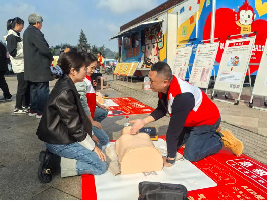 “急救地摊”秒变实战!乐山市红十字应急救护师资街头演绎“最快救援”